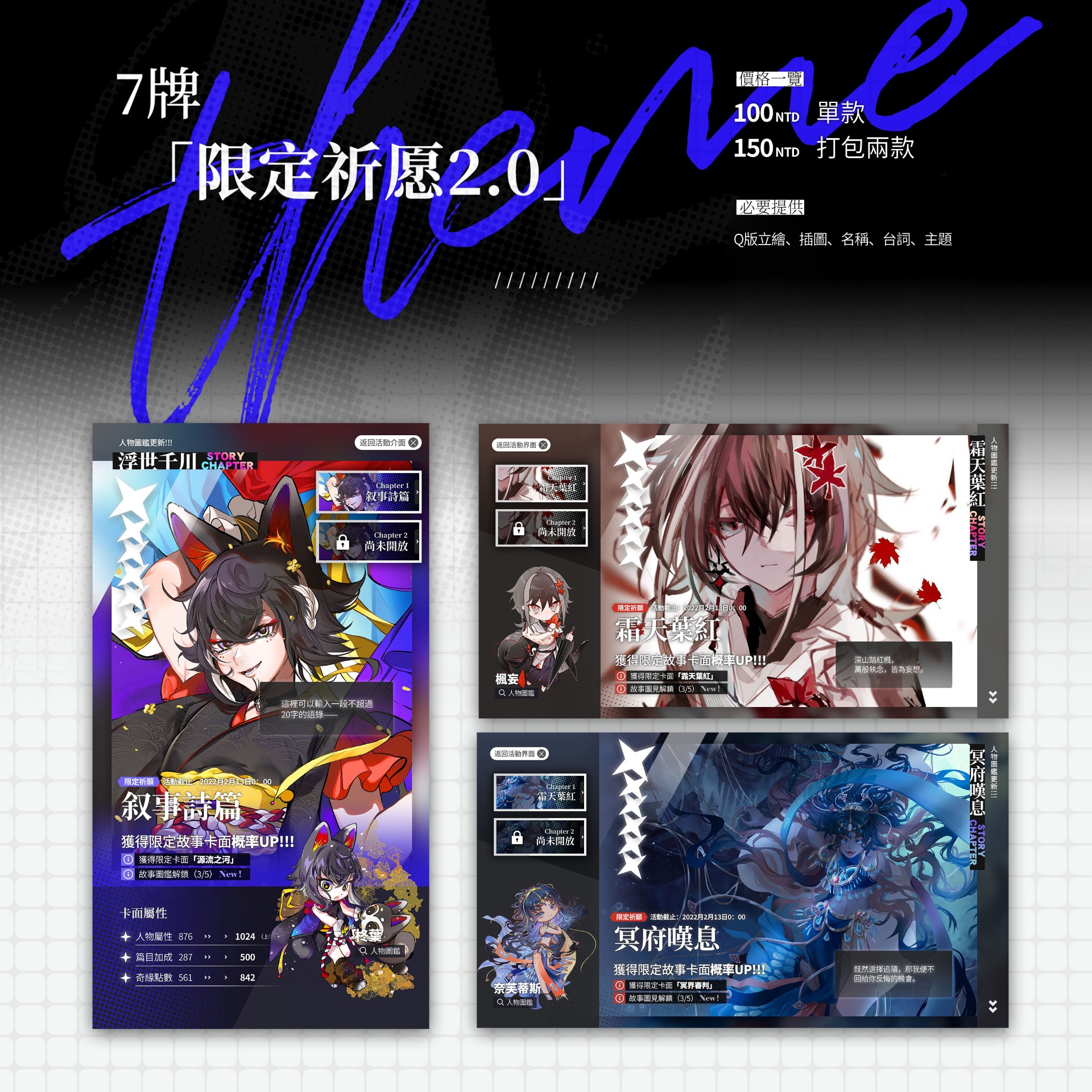 主題,時間日期,配色根據OC來調整,也可提供色卡,文字部分皆可更換